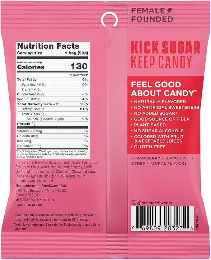 We love candy too! But we don’t love all the sugar. SmartSweets is the first candy you can feel good about with up to 92% less sugar per 50g versus the leading traditional candy equivalents. Bursting with juicy flavours and better-for-you ingredients, SmartSweets makes the nostalgic flavours you know and love, without all the sugar.