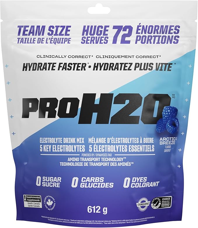 Introducing PROH2O, our rapid hydration mix. Perfect for everyone from "weekend warriors" to pro athletes, because nothing is more important than proper hydration to perform your best. When you're feeling low on energy, dragging your feet, or experiencing brain fog, it's often due to dehydration. PROH2O is designed to rehydrate you faster than water alone, thanks to its blend of essential electrolytes and active transport nutrients. Unlike most hydration products that are packed with sugar and under-dosed on key electrolytes, PROH2O is sugar-free and contains four times the electrolytes of leading sports drinks. Our formula meets the World Health Organization's ORS (oral rehydration solution) standards, ensuring the perfect balance of sodium, chloride, and potassium. PROH2O is also free from carbs, dyes, and synthetic sweeteners, making it a cleaner choice for your hydration needs. Whether you're sweating it out in the gym or need a quick pick-me-up, PROH2O helps you hydrate more completely and faster, so you can get back to feeling your best. Stay hydrated, stay active with PROH2O. W.H.O.’s ORS ratio of sodium to potassium (WHO/FCH/CAH/06.1).